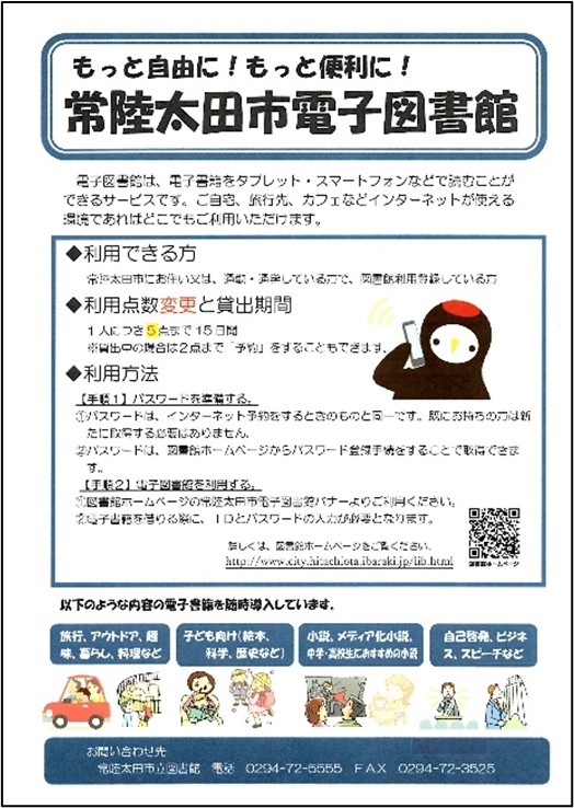 また、左のパンフレットにある電子図書館に関する電子書籍サービス使用料は108万円で、市立図書館も力を入れている分野です。電子図書館は、まだまだ市民には知られていませんので、3月議会の一般質問において、広報活動の充実を要望しました。