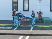 特に茨城県防航空隊による建物屋上から防災ヘリコプターへの吊り上げ訓練も、初めて披露されました。日頃の訓練の成果が見られ、ヘリコプターに負傷者(模擬)が吊り上げられると大きな拍手が起きました
