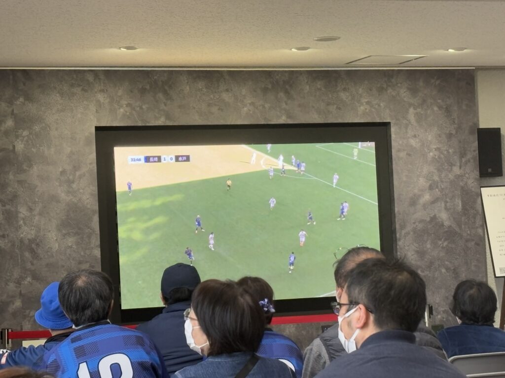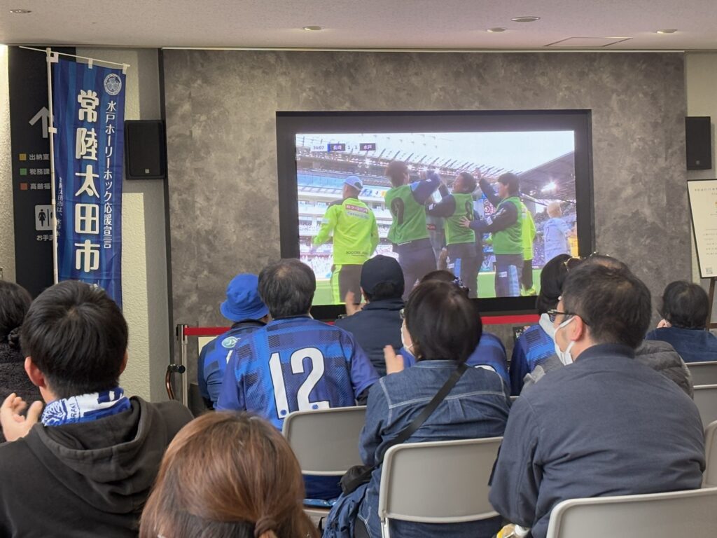 常陸太田市役所のロビーで開催された水戸ホーリーホック応援のパブリックビューに参加してきました。100名ぐらいの皆さんと試合を見守りましたが、残念ながら1対2で負けてしまいました。