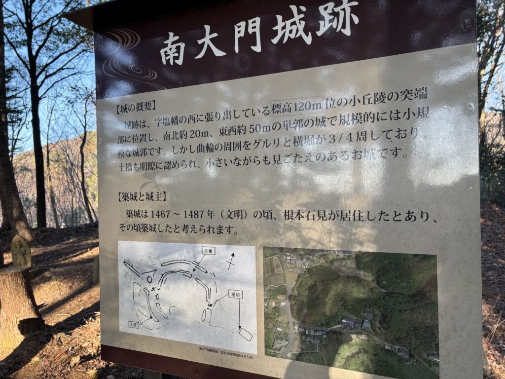 常陸国ロングトレイルの視察(国見山) 2026年1月4日 最終更新日時 : 2026年1月4日 kamoshida 午後の時間を利用して下大門町から国見山にかけて、常陸国ロングトレイルのコースを歩き、コースのよさや課題を確認しました。 北大門城 国見山(291m)山頂から南を望む 南大門城
