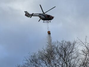 19日(木)20:29に発生した出火により西側山林へ飛び火し、現在も延焼中(8ha焼失)。21日(土)は、消防本部・市内全消防隊合わせて212名による消火活動中。陸上自衛隊はヘリコプター3機による十王ダムからの空中消火中。記録的な小雨により、空気も乾燥しておりますので「火の用心」の徹底を!