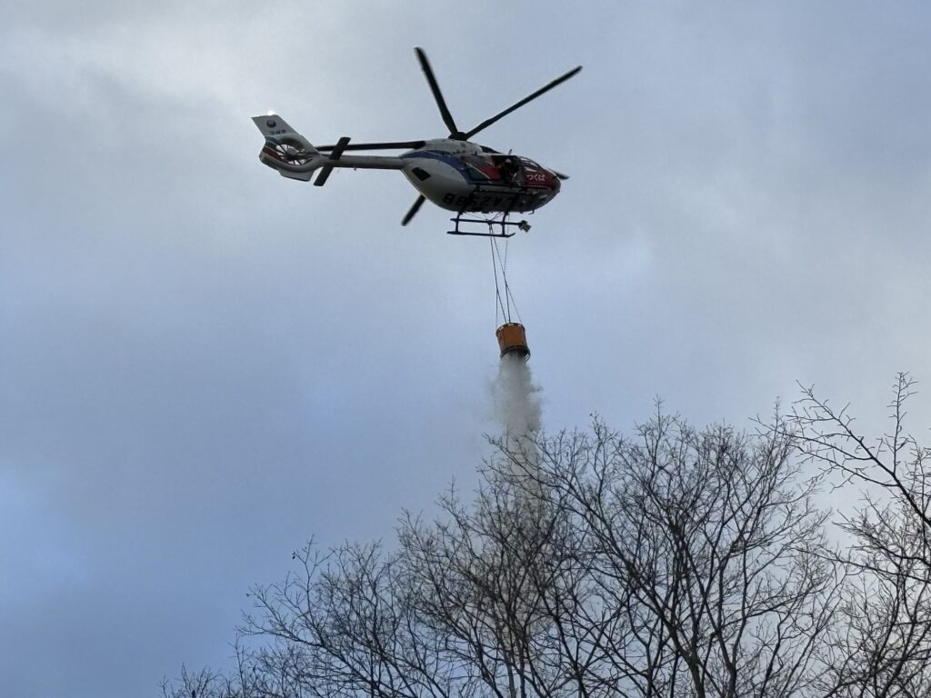 21日(土)の午後、金砂郷小学校近くの大里ふれあい広場ギャラリーの南側の山林で火災が発生。市消防本部や里美地区の林野火災に対応していた金砂郷地区の消防団も対応。茨城県防災航空隊のヘリコプターも消火活動を17時前まで行う。全力の消火活動で鎮火に向かう。お疲れ様です!火の用心!